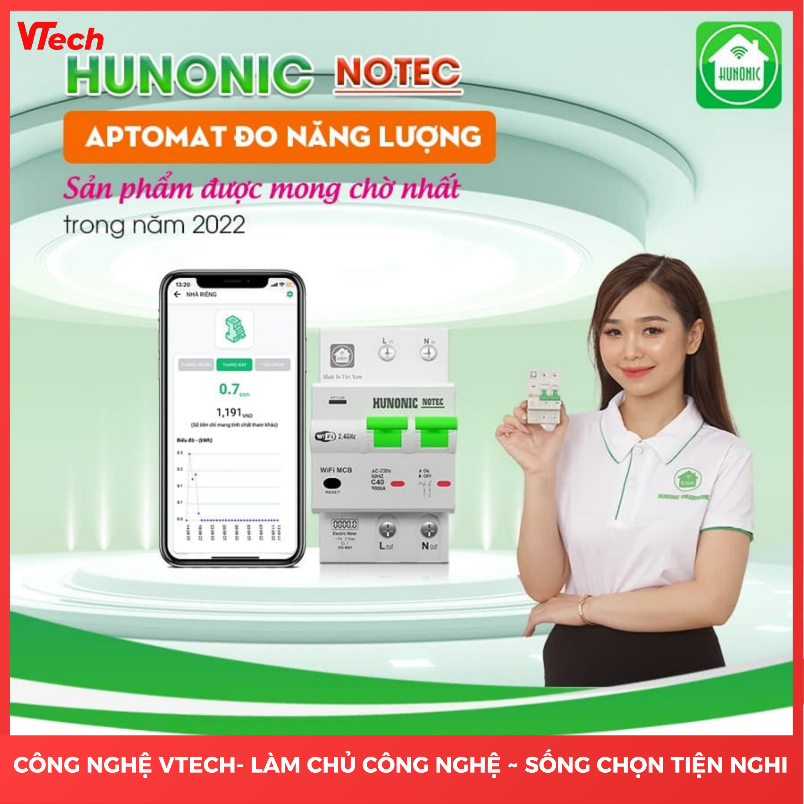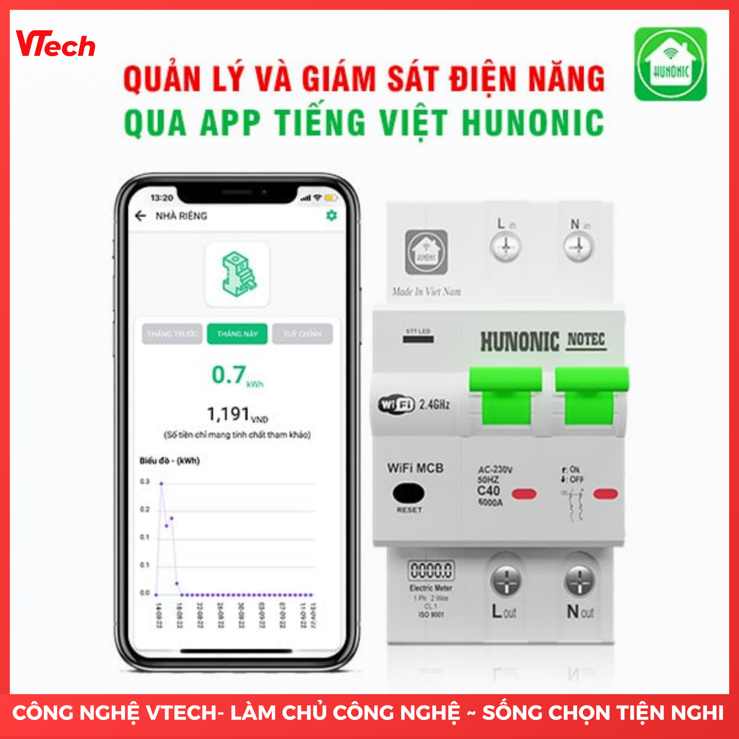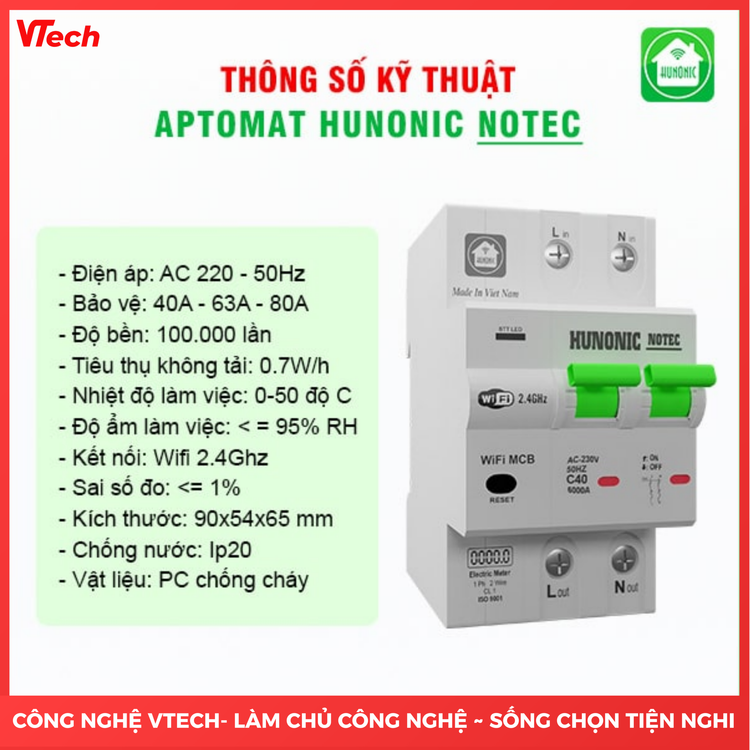 Aptomat Wifi Đo Năng Lượng Notec Hunonic
