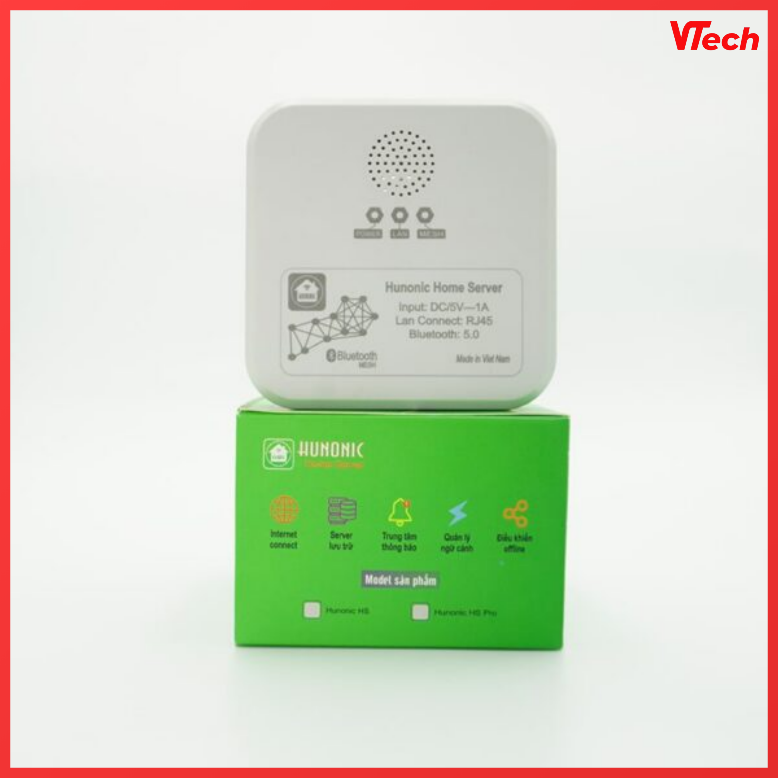 Hunonic Home Server là thiết bị trung tâm bắt buộc khi sử dụng các dòng công tắc Bluetooth Mesh như Hunonic Luxury, Hunonic Premium và các cảm biến thông minh. Thiết bị này tiếp nhận tín hiệu, lưu trữ cài đặt và gửi lệnh điều khiển đến từng thiết bị trong hệ thống, cho phép người dùng điều khiển nhà thông minh qua điện thoại và tự động hóa theo kịch bản đã thiết lập.