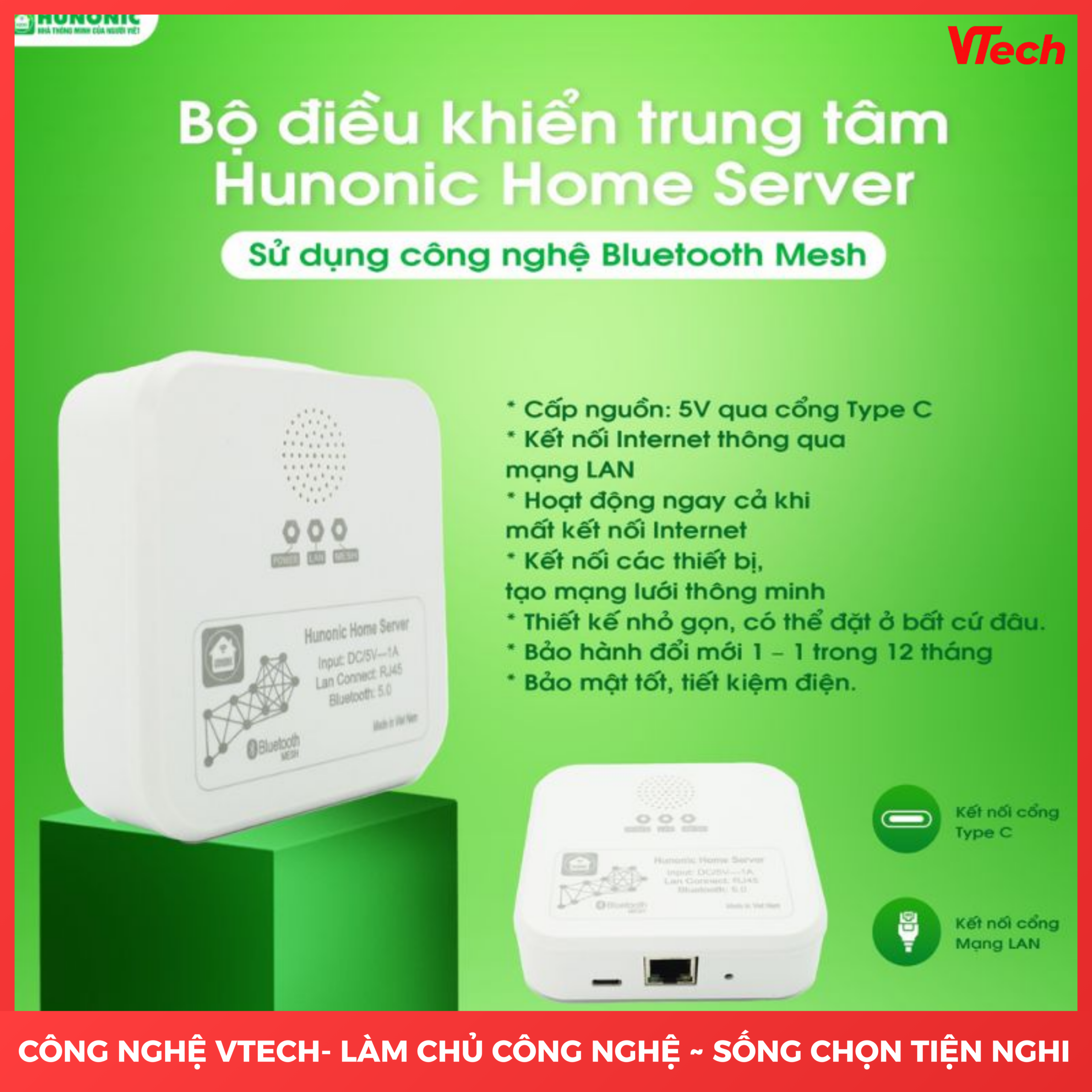 Trong hệ sinh thái nhà thông minh Hunonic sử dụng Bluetooth Mesh, Bộ điều khiển trung tâm Hunonic Home Server đóng vai trò then chốt – được ví như bộ não điều phối toàn bộ ngôi nhà. Thiết bị có nhiệm vụ kết nối, quản lý và điều khiển đồng bộ các công tắc, cảm biến và thiết bị thông minh Hunonic, giúp mọi hoạt động diễn ra mượt mà, chính xác và ổn định.