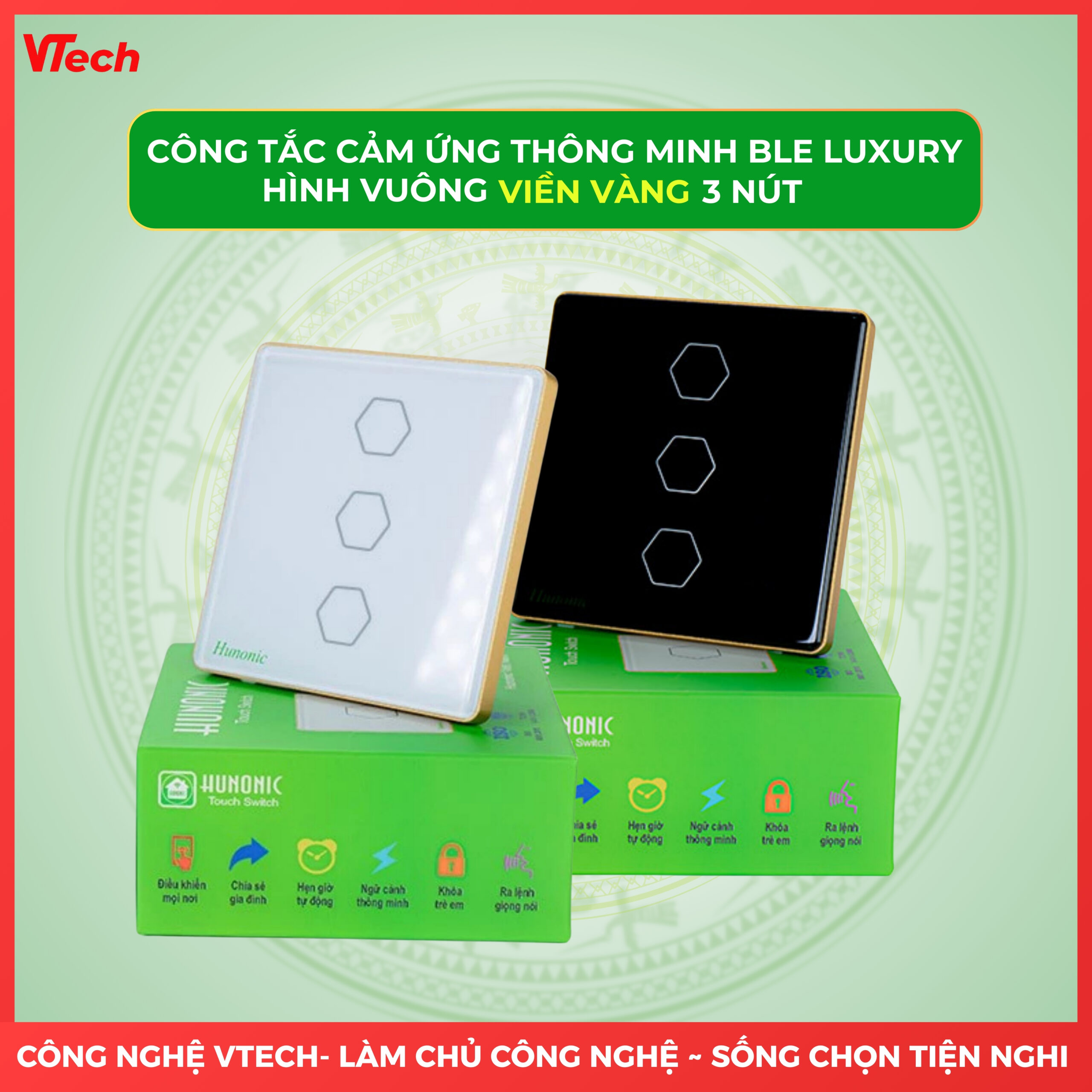Công Tắc Thông Minh BLE Luxury 3 Nút Vuông Hunonic