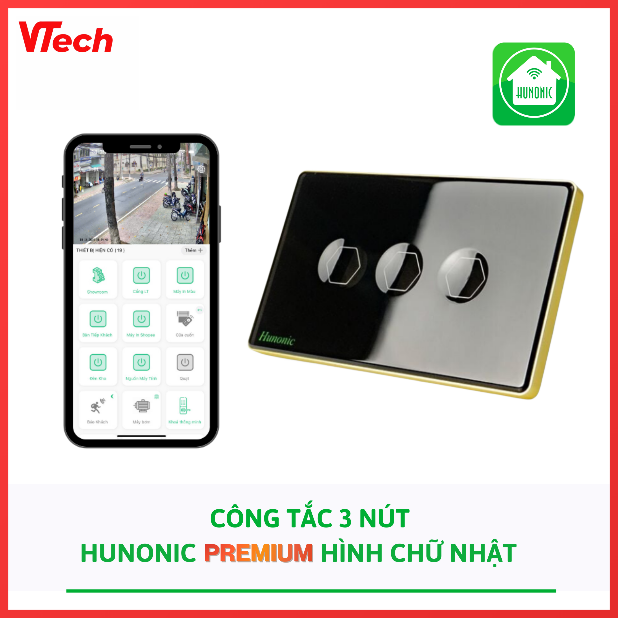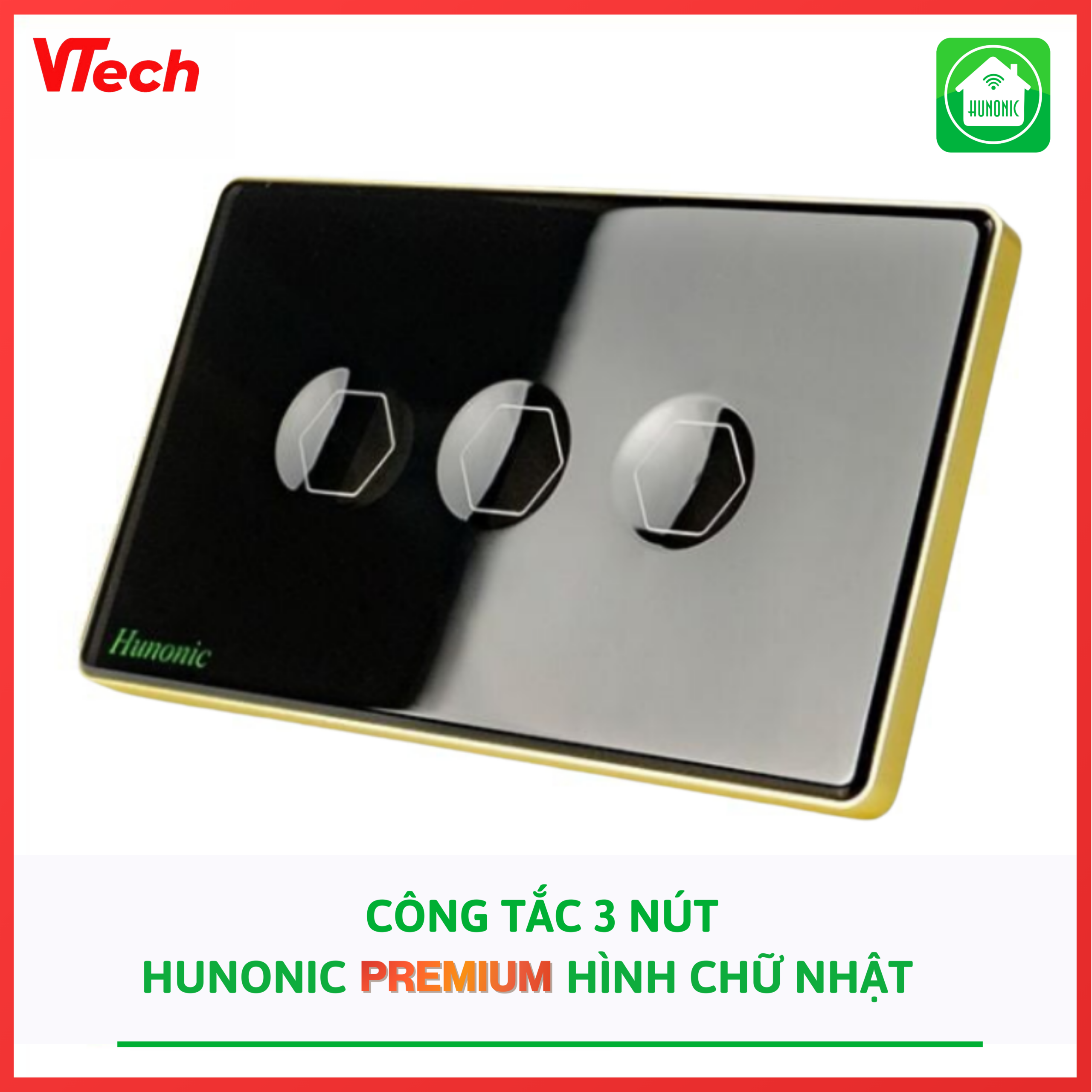 🔰 Giới thiệu Công tắc Hunonic Premium chữ nhật 3 nút