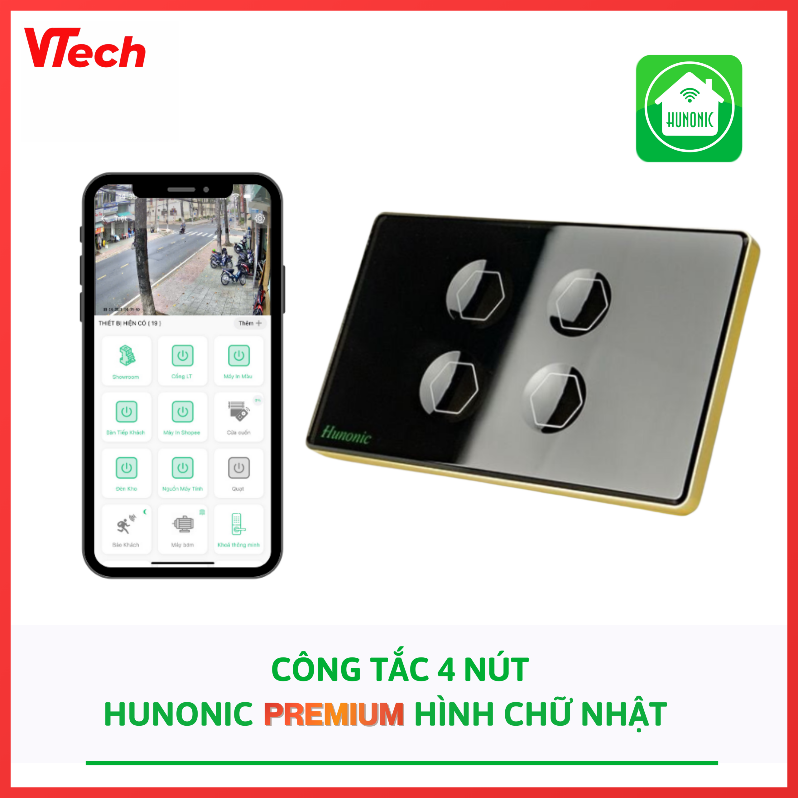 Công Tắc Thông Minh Chữ Nhật BLE PREMIUM 4 Nút Hunonic – Công Suất Lớn, Sang Trọng & An Toàn
