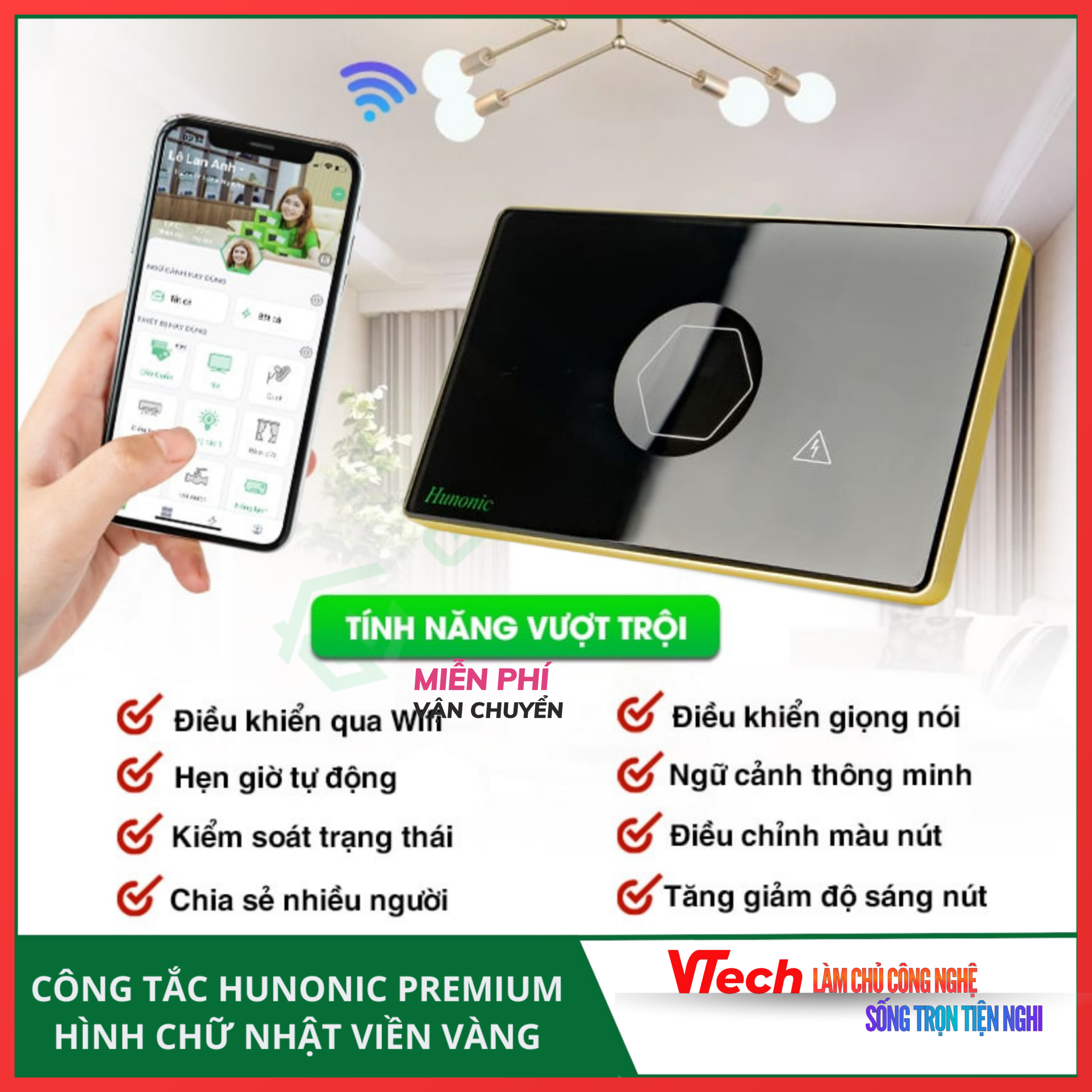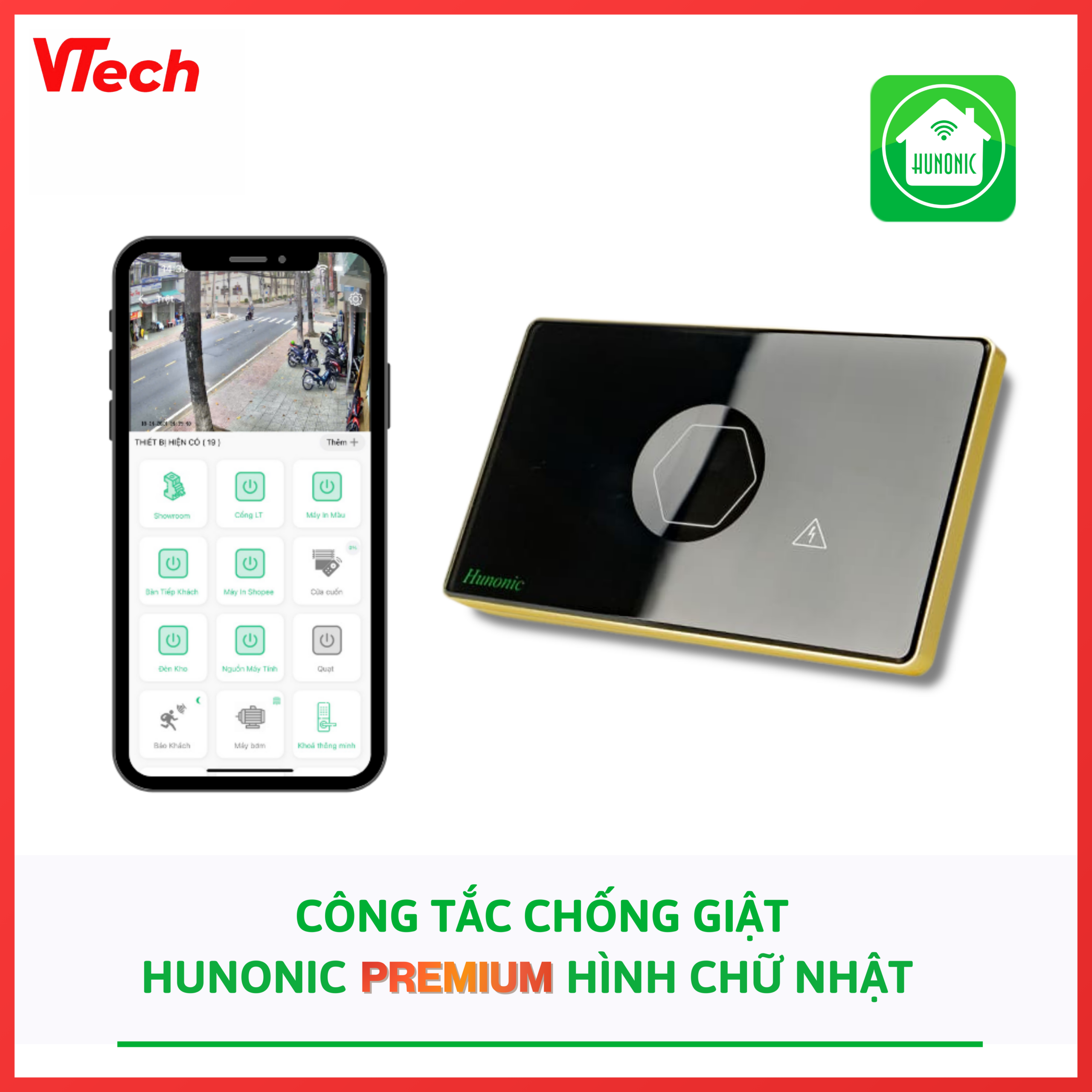 Công tắc thông minh BLE PREMIUM Chống Giật Hunonic (hình chữ nhật)
