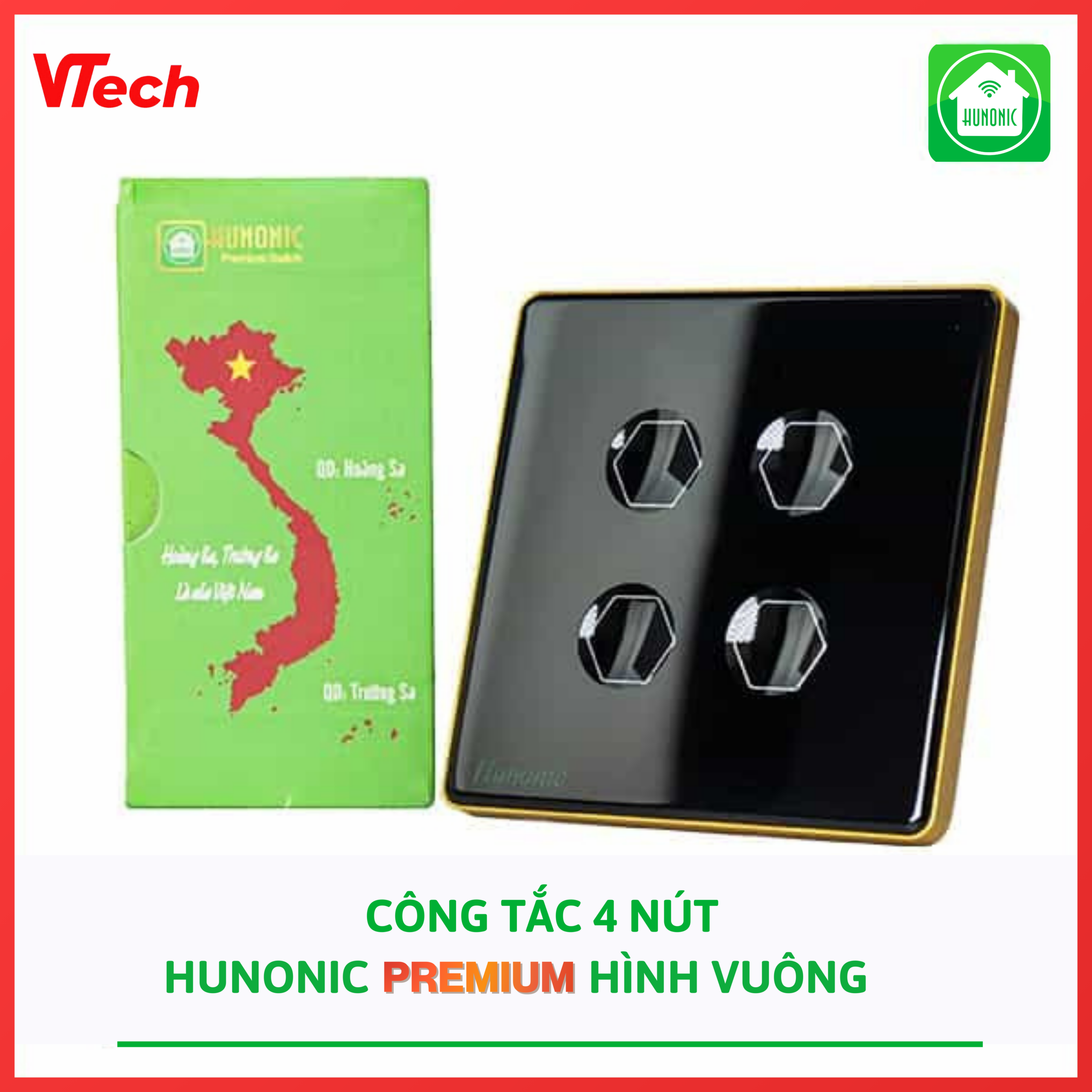 Công Tắc Thông Minh BLE Premium 4 Nút Hunonic Hình Vuông – Sang Trọng, Đẳng Cấp và An Toàn