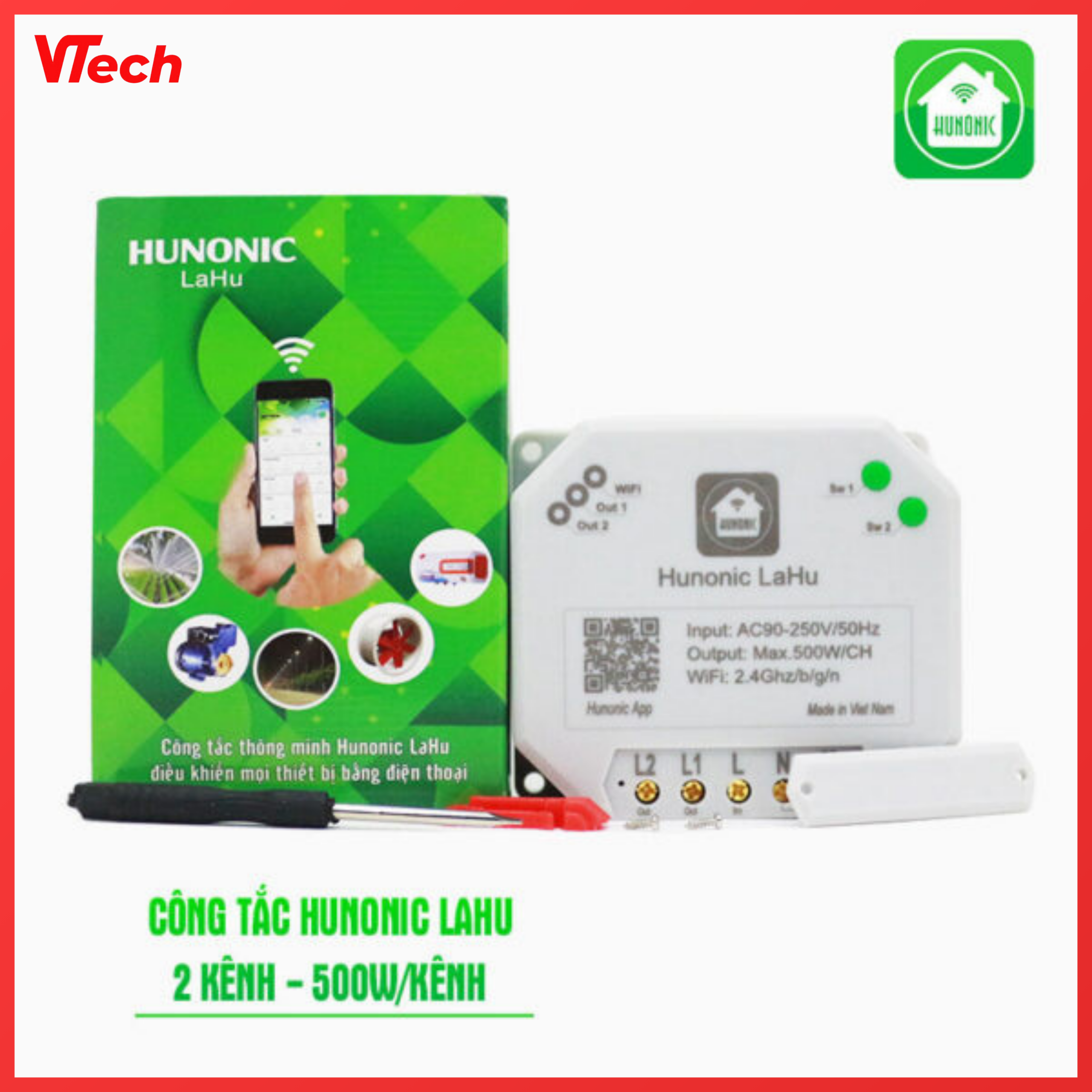 Công Tắc Thông Minh Lahu 2 Kênh Hunonic – Điều Khiển Từ Xa