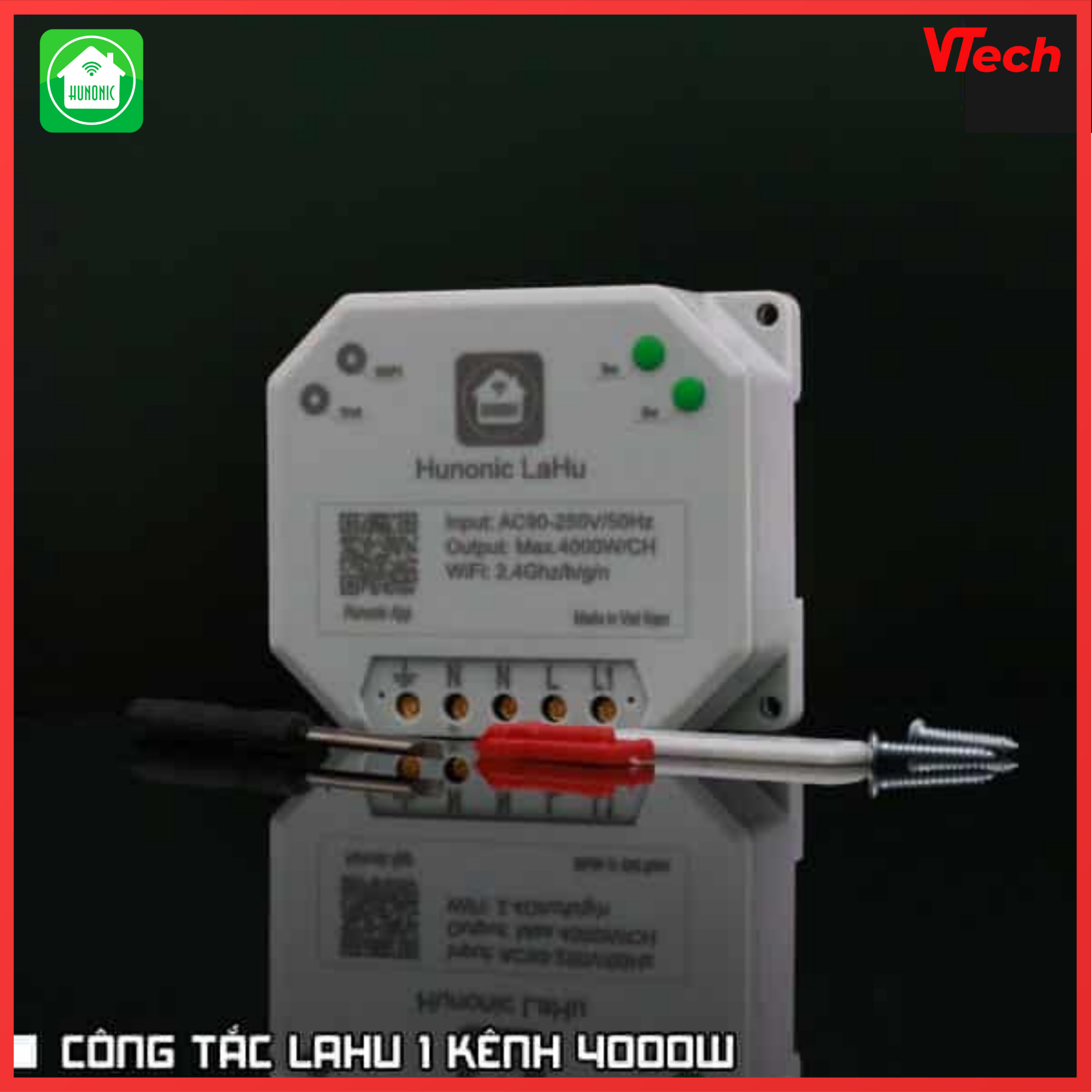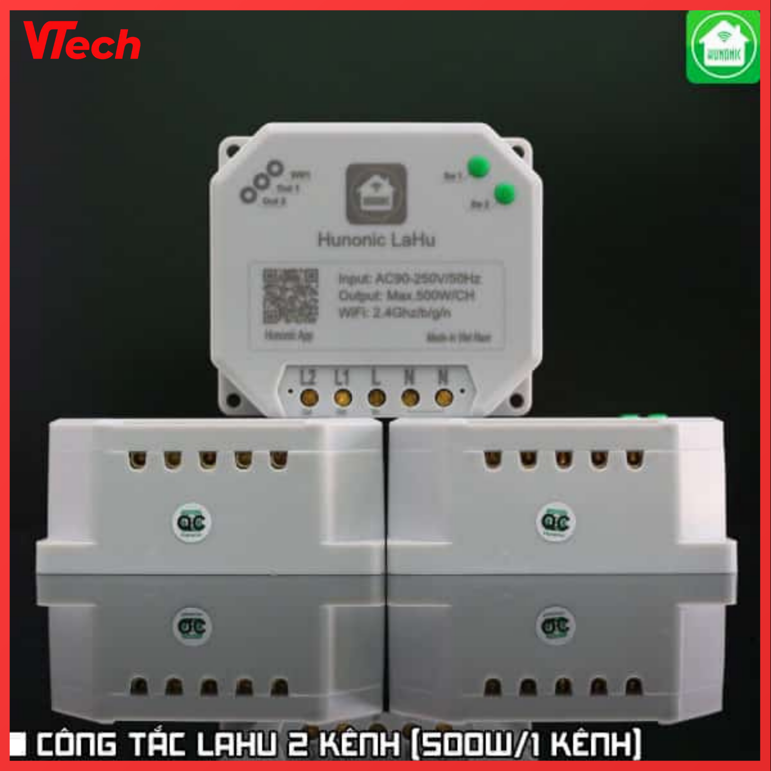 Công tắc Hunonic Lahu là dòng công tắc thông minh WiFi do Hunonic Smarthome nghiên cứu và sản xuất, chuyên dùng cho lắp nổi, bắn vít hoặc lắp trong hộp điện kỹ thuật. Sản phẩm phù hợp với nhiều mục đích sử dụng như điều khiển đèn, máy bơm, hệ thống tưới tự động, phun sương, tủ điện,…