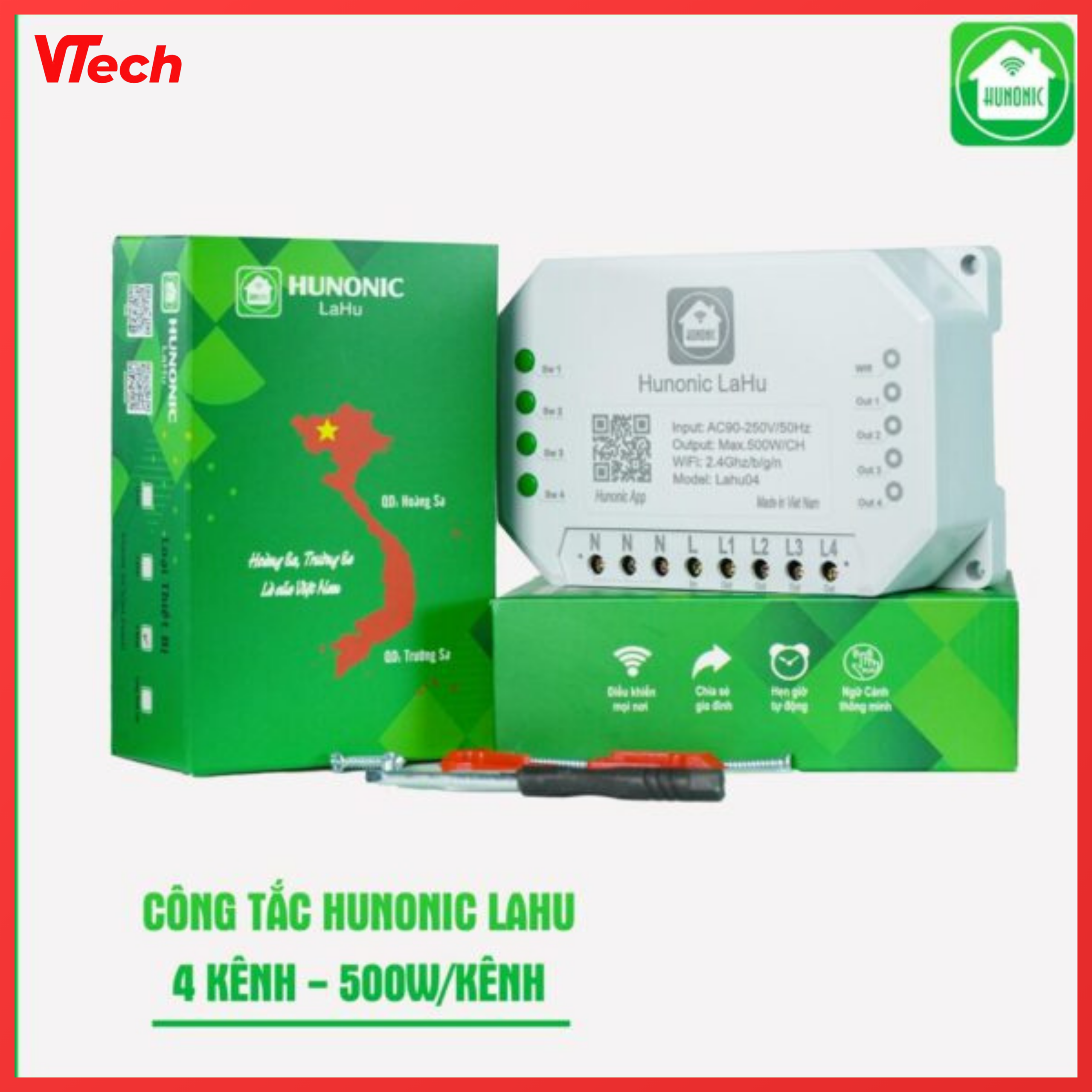 Công Tắc Thông Minh Lahu 4 Kênh Hunonic – Điều Khiển Từ Xa