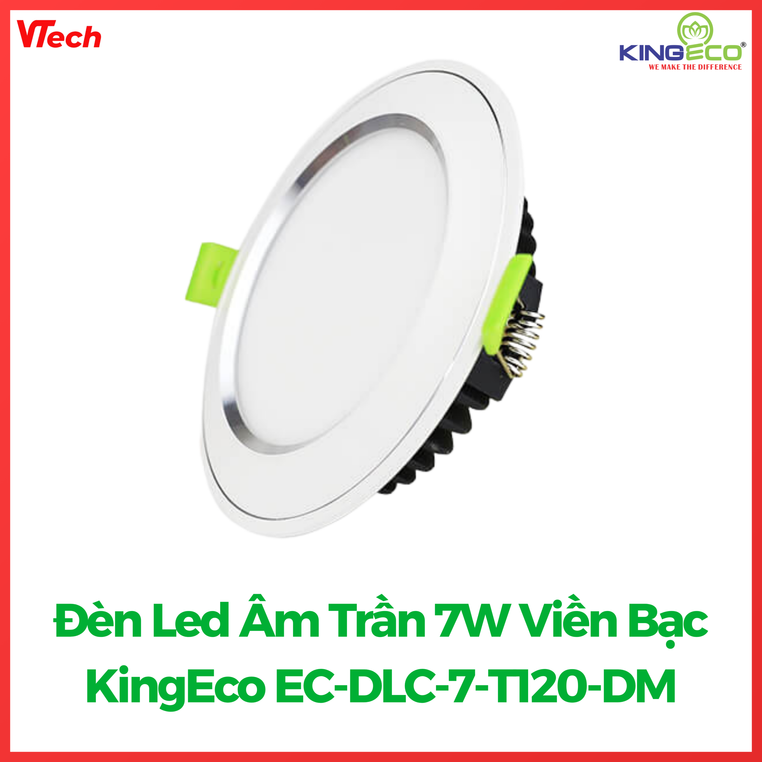 Đèn LED Âm Trần 7W 3 Viền Bạc KingEco EC-DLC-7-T120-DM – Ánh Sáng Đẹp, Bền Bỉ, Tiết Kiệm Điện