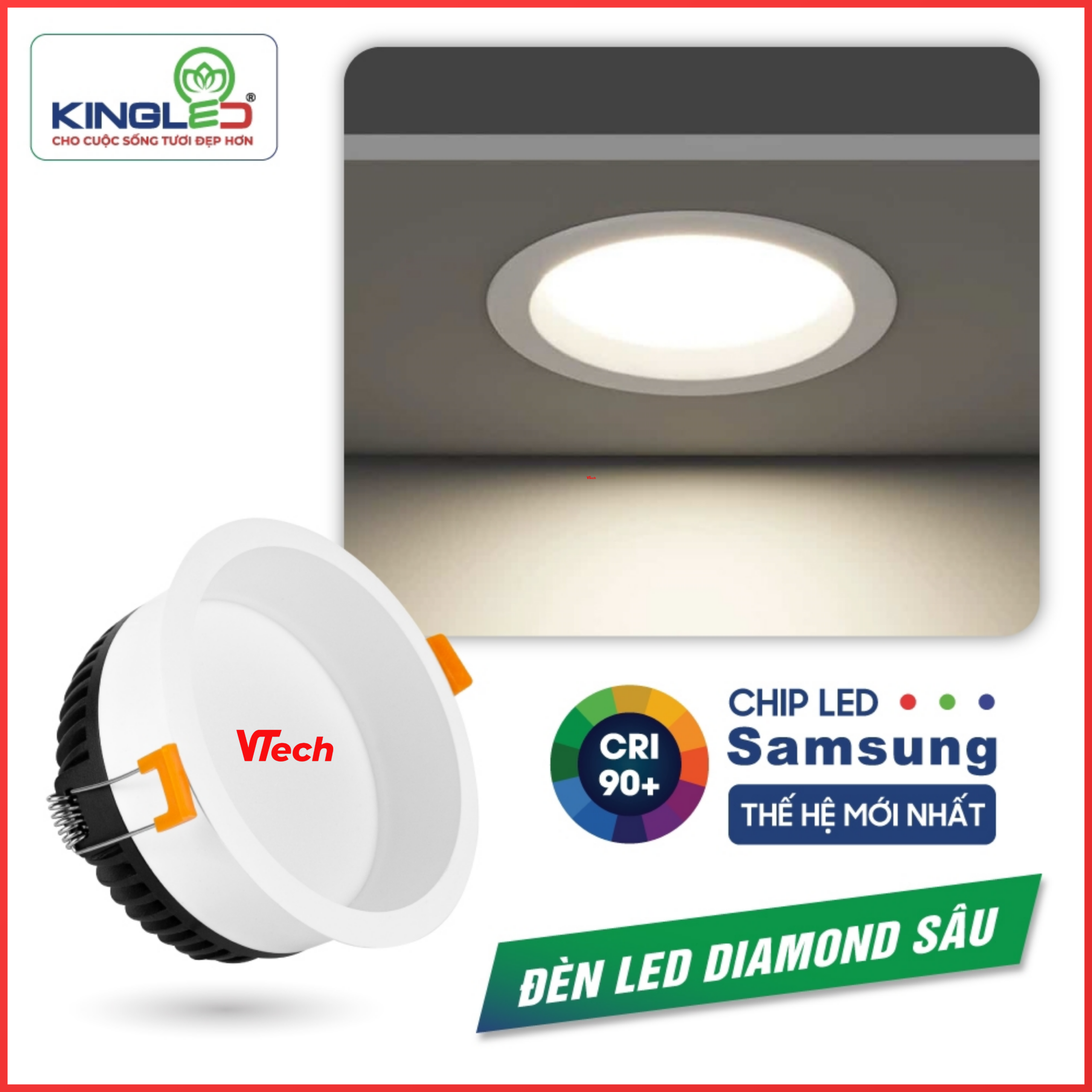 Đèn Led Âm Trần Diamond Mặt Sâu DDLS-T125 KingLed 15W – CRI Ra90+, Chống Chói UGR<19, Chip Samsung 2835