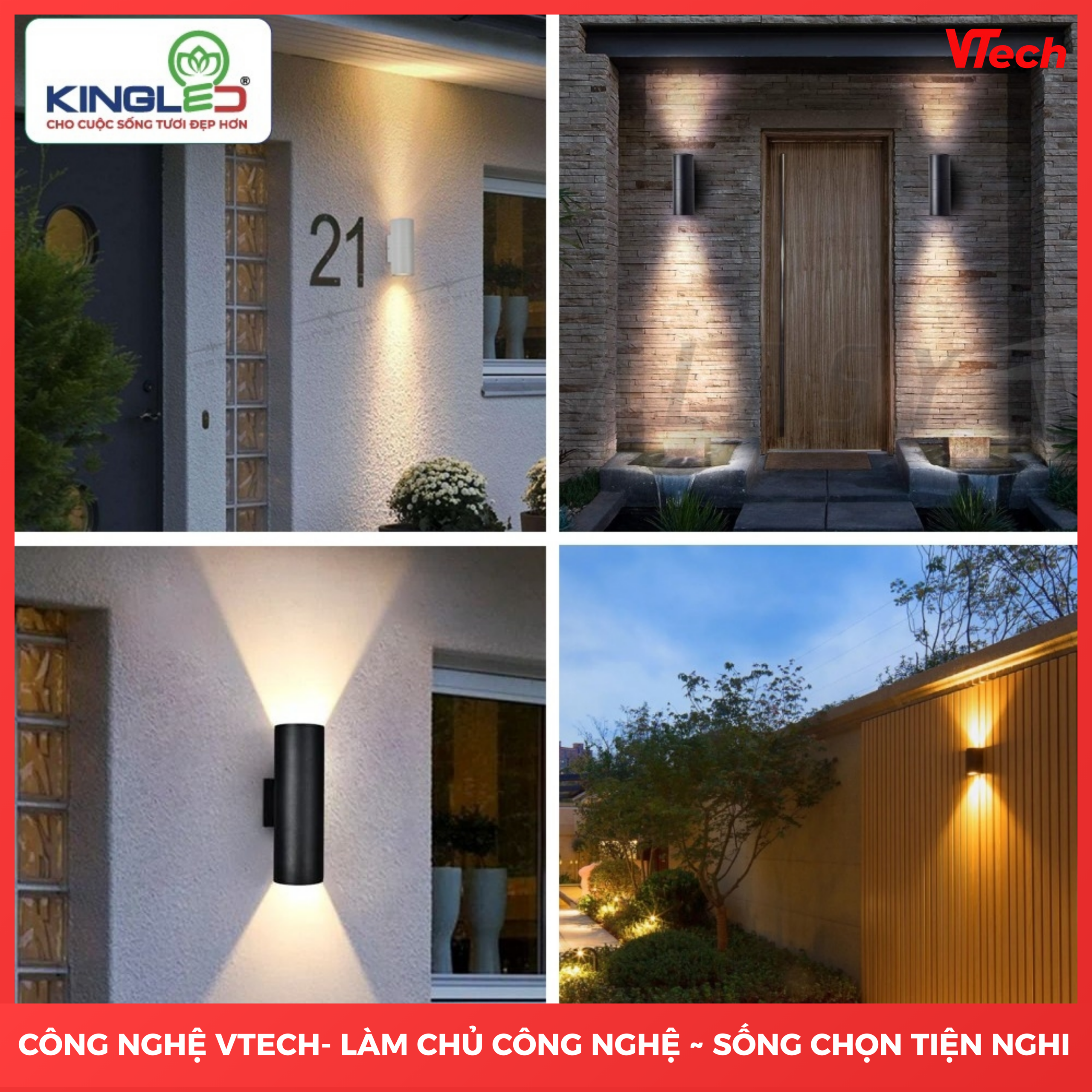 Đèn LED Gắn Tường Ngoài Trời KingLED 0047 – Chiếu sáng 2 chiều sang trọng, bền bỉ