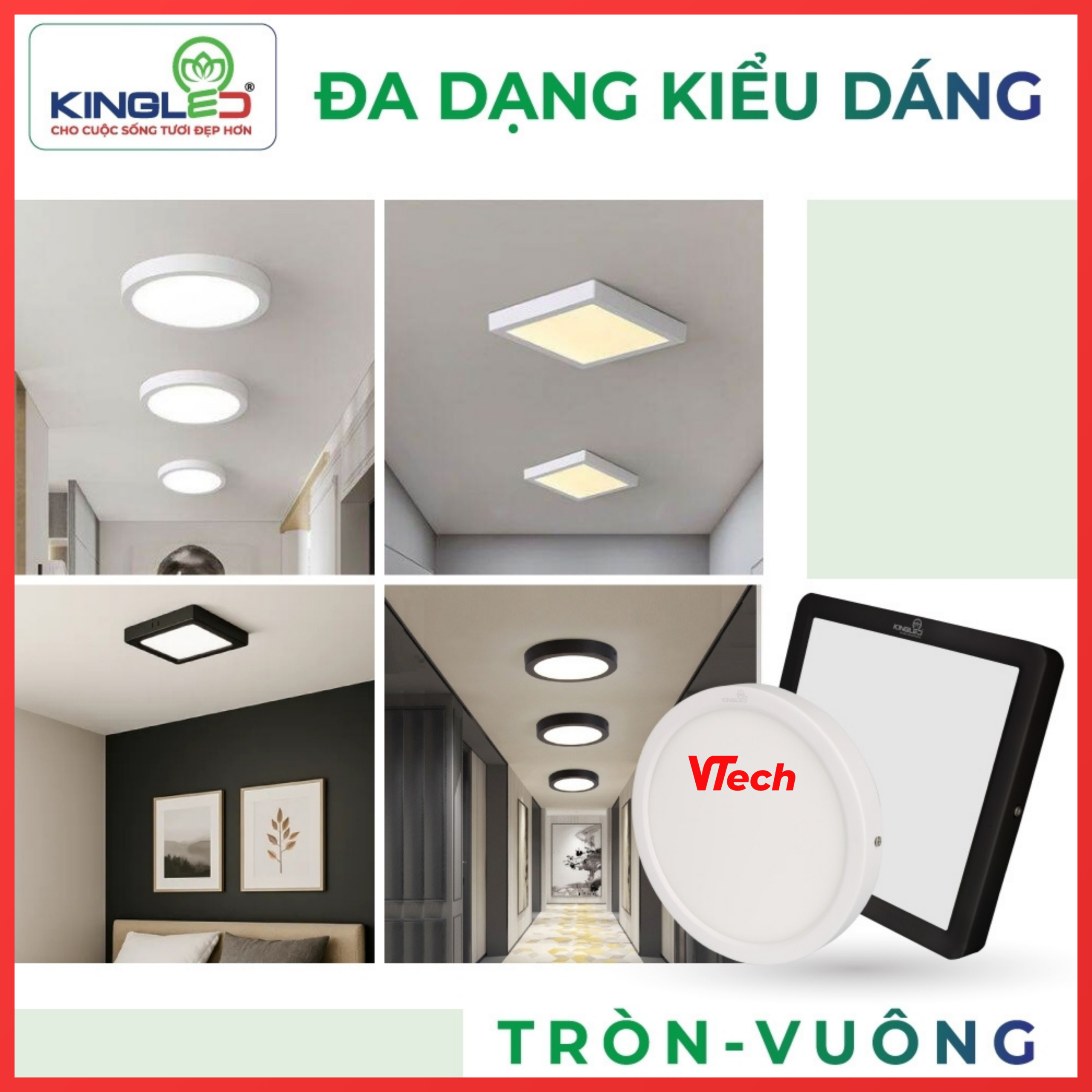 Đèn LED ốp trần KingECO 18W phù hợp lắp đặt tại: