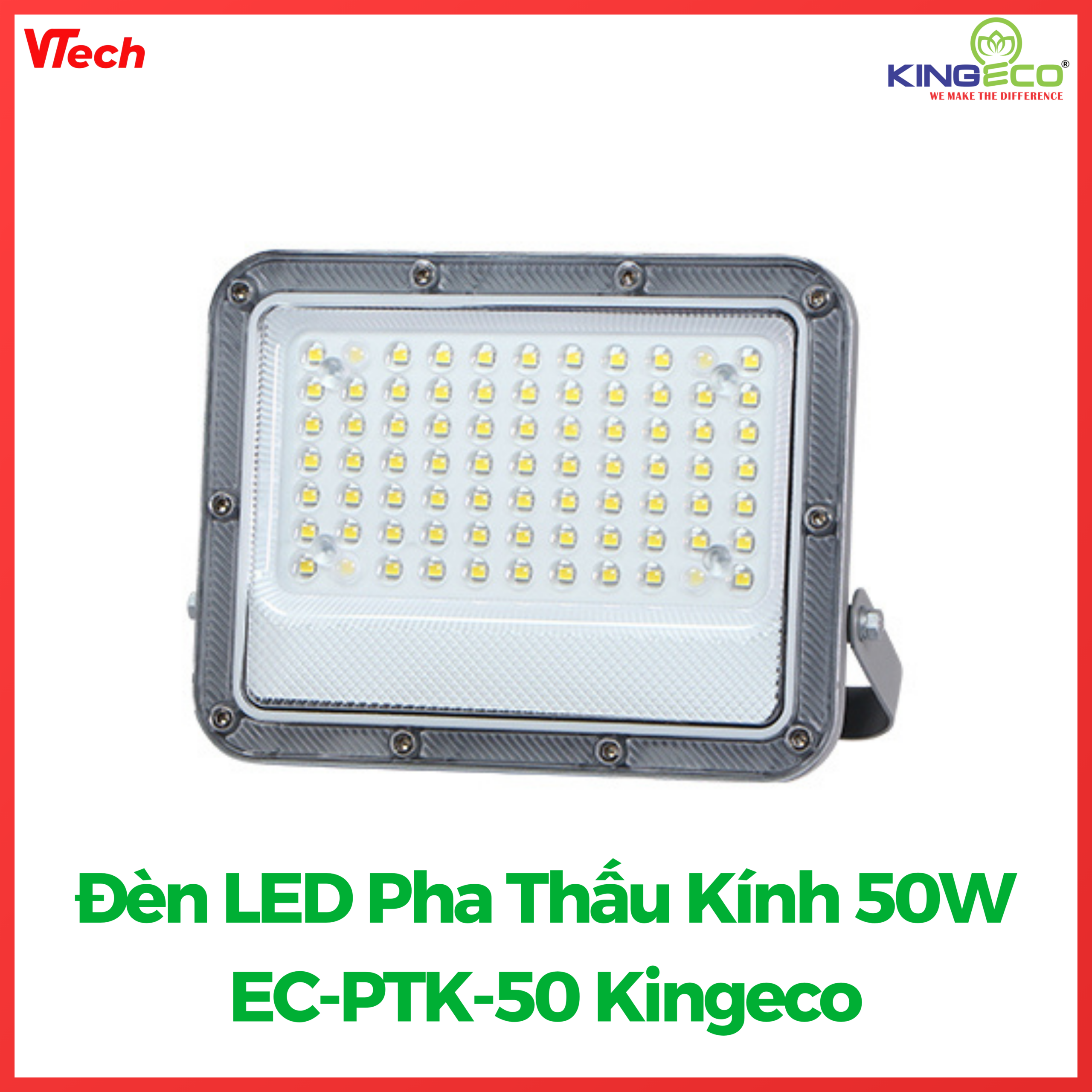 Đèn LED Pha Thấu Kính 50W EC-PTK-50 Kingeco – Chiếu Sáng Mạnh Mẽ, Bền Bỉ Ngoài Trời
