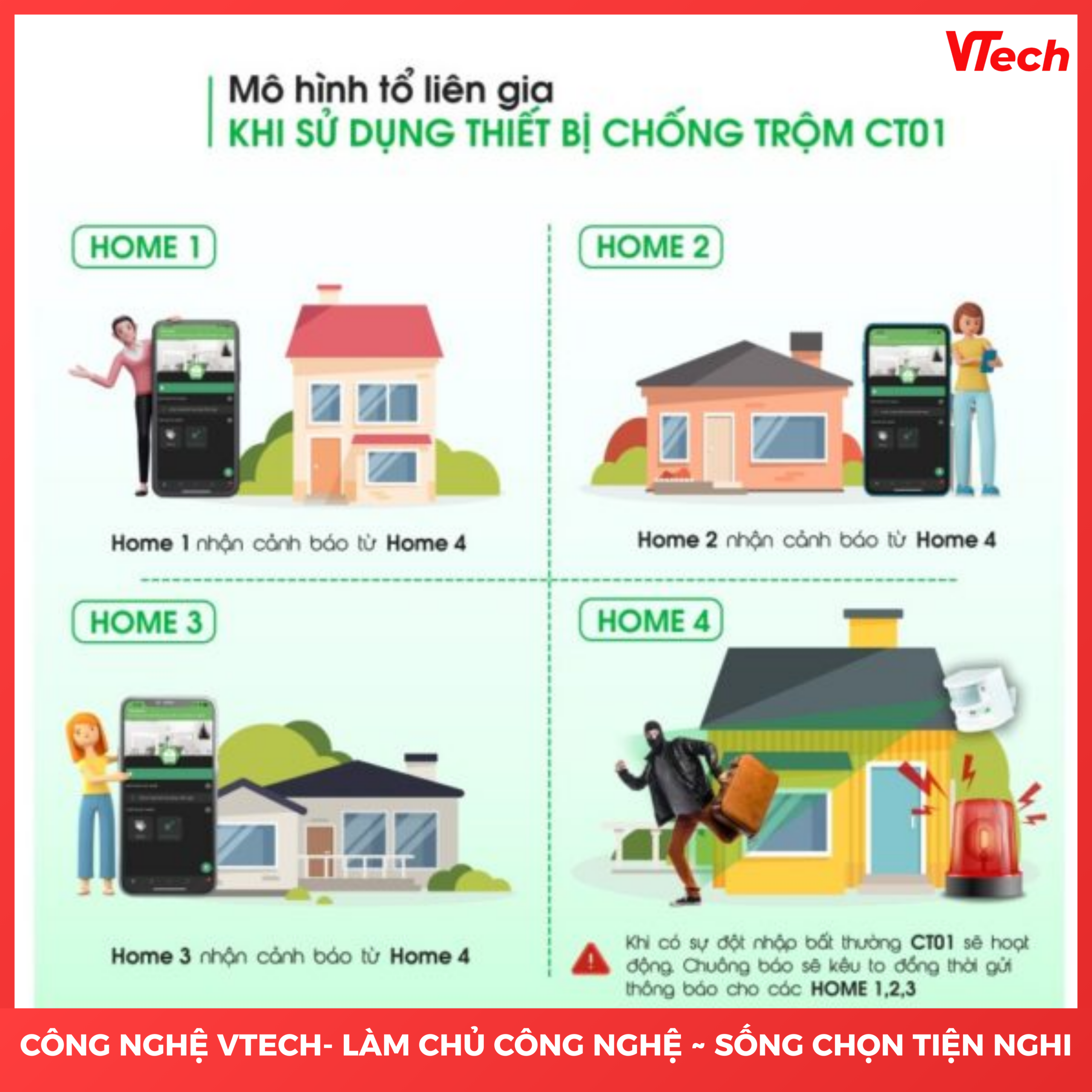 Hunonic CT01 hoạt động như một thiết bị cảnh báo độc lập, kết nối trực tiếp Wifi 2.4GHz, cho phép phát hiện chuyển động và kích hoạt báo động lớn khi có xâm nhập trái phép. Âm lượng lên đến 115dB giúp cảnh báo hiệu quả, xua đuổi kẻ gian và thông báo kịp thời cho gia chủ.